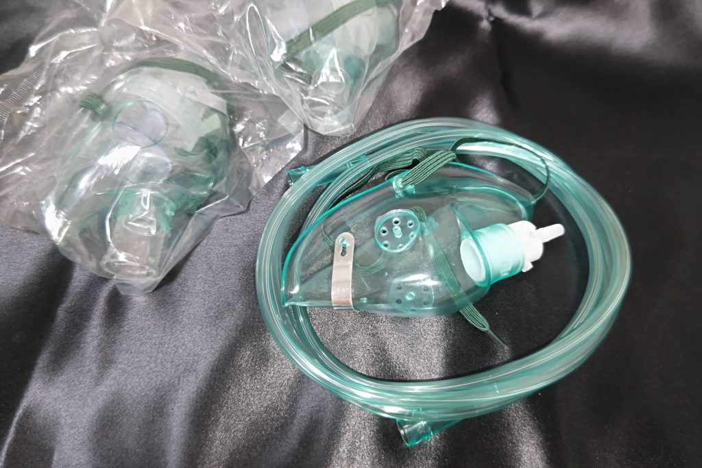 大きさ比較のために女性の手(ニトリルグローブSサイズ)と並べて撮影しています。